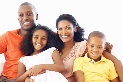 Portrait of happy African American family of four smiling together